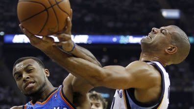 While Durant was missing shots, Randolph and Mayo were taking advantage of each other's presence. Randolph was 7-of-13 for 20 points in the second half while Mayo was 4-of-6 for 10. They combined for 46 points in the game, helped Memphis outscore the Thunder by a 51-29 margin over the final 24 minutes and complimented each other afterward.